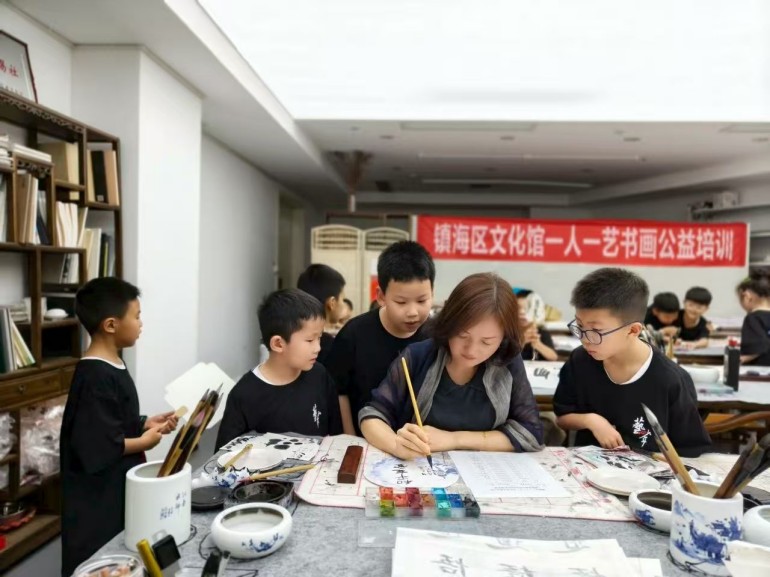 为推动宁波市“一人一艺”全民艺术普及工程建设,发挥公共文化场馆惠民功能,打造青少年美育品牌项目,提高青少年艺术素养和审美能力,开展2025年镇海区文化馆“艺心少年”公益培训活动。其中有国画、书法、布艺、剪纸、沙画、泥塑。