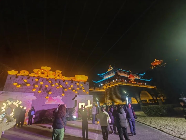 清晨的招宝山,摄影师的镜头对准威远城和安远炮台,晨曦中的古建筑与远处的甬江入海口同框,历史遗存与港口运输交织成一幅画面。在九龙湖,香山教寺隐于山间,横溪村的农家院落里村民正为节庆活动做准备,生活气息浓厚。宁波植物园里,早樱盛开,非遗表演“打铁花”在夜色中点亮园区的天空。采风当天恰逢招宝山元宵灯会,暮色四合时,整座招宝山流光溢彩,万千花灯次第绽放,璀璨如星。