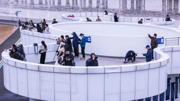 两天时间里,摄影家们的足迹还延伸至永旺村、包玉刚故居、宁波帮博物馆、骆驼新城等地。他们记录下乡村花海与科创园区的共生,也捕捉到新城夜景与市民广场的活力。从古海塘的晨光到石化区的灯火,镇海的多元面貌被一一纳入镜头。